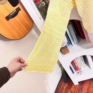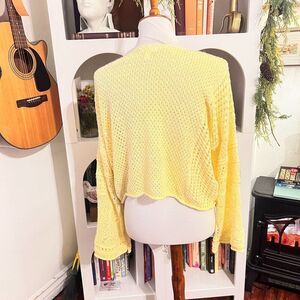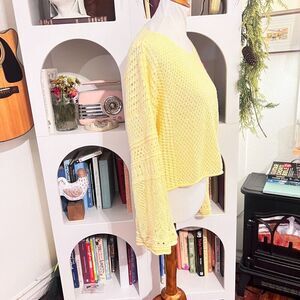 Lauren Condrad Womens Yellow Open Knit Flare Sleeve Boxy Sweater Sz XL Preppy