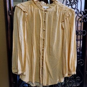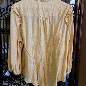 Lauren Conrad 2X Yellow White Work Career Blouse Long Sleeve