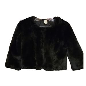 Lauren Conrad Black Faux Fur Cropped Jacket size Small