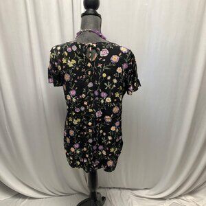 Lauren Conrad Black Floral Short Sleeve Top Womens Size Medium Blouse Romantic
