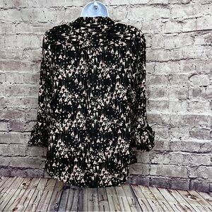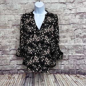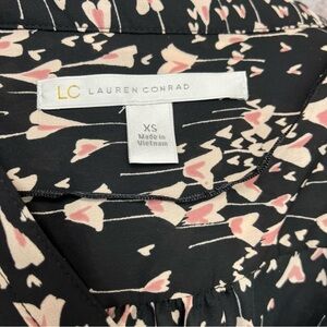 Lauren Conrad Black Pink Heart Print Roll Tab Sleeve Blouse