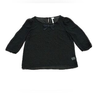 Lauren Conrad Black Polka Dot Sheer Bow Top Sz M 3/4 Sleeve Mod Retro Twee Doll