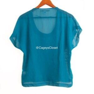 Lauren Conrad Blouse XS Aqua Lace Sheer Dolman