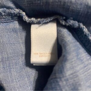 Lauren Conrad Womens Medium Blue Chambray Tencel Ruffle Cold Shoulder Top in good used condition. No stains, tears or rips.