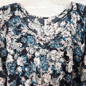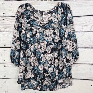Lauren Conrad Blue Floral Long Sleeve Blouse XXL
