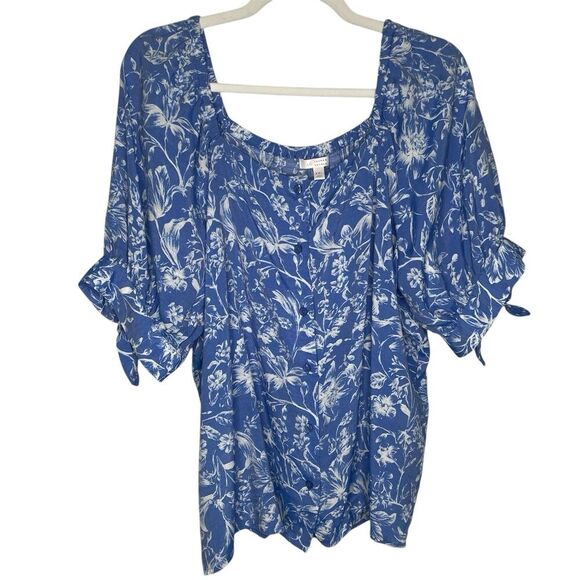 Lauren Conrad Blue White Floral Fairycore Button Down RayonBlend Top SZ XXL