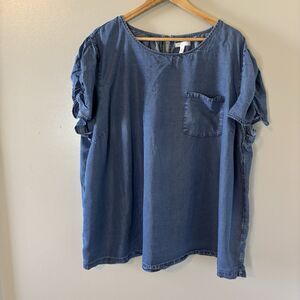 Lauren Conrad Chambray Top Blue Short Sleeves Shirt Womens Sz 3X