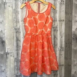 Lauren Conrad coral & cream colored floral print sleeveless midi dress. Keyhole back. Side zip. Excellent like new condition. No flaws.