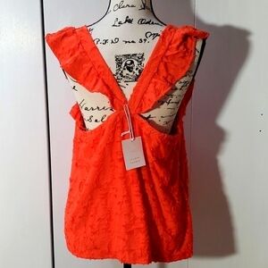 Lauren Conrad - Coral Square neckline Ruffle trim Tank top Criss cross Sz.XL