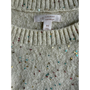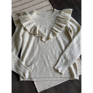 Lauren Conrad Cream Ruffle Sequin Sweater Confetti Speckle Knit Size M