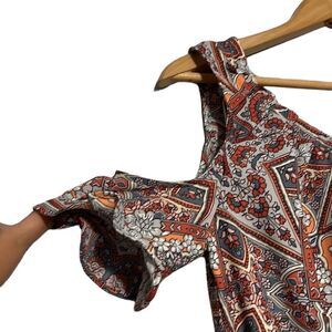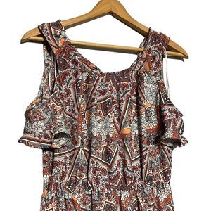 Lauren Conrad Dress Woman's Size Small Cold Shoulder Multicolor Babydoll Ruffle