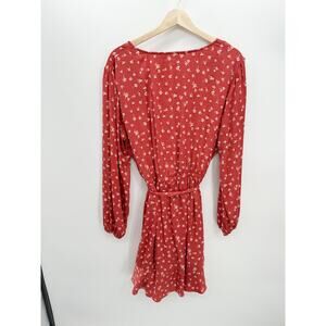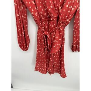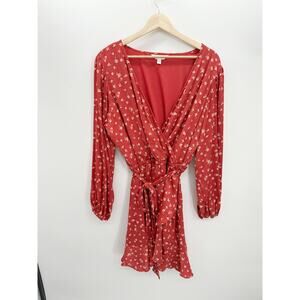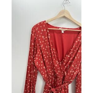Lauren Conrad Dress Women XXL Red Microfloral Faux Wrap Knee Length Satin Fall