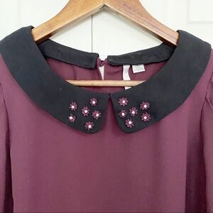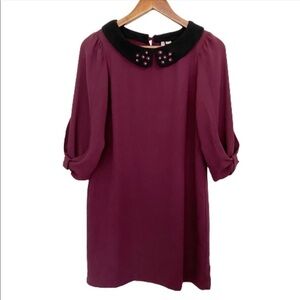 Lauren Conrad, Maroon, Removeable, Embellished, Peter Pan Collar, Faux Roll Tab Sleeve, Shift Dress