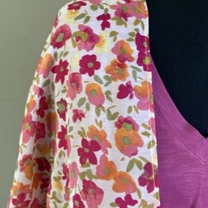 Lauren Conrad Floral Topper Cardigan & Sonoma V-Neck Raspberry Tee Sz L NWOT