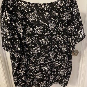This Lauren Conrad blouse has a v-neckline with a small bow at the neckline. It has a white flower design throughout with flutter sleeves that adds a feminine feel to the blouse. Made of 100% polyester. This blouse is not new and doesn't have tags, but it has never been worn.