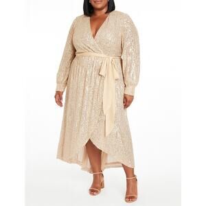 Lauren Conrad Gold Sequin Wrap Dress Midi Long Sleeve size XXL