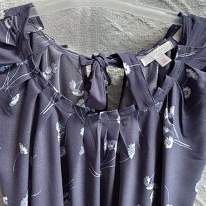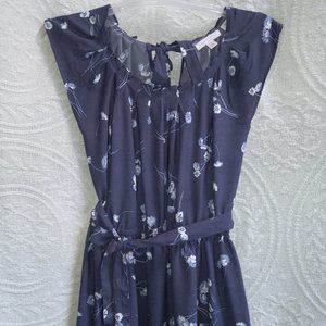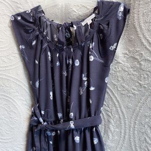 Lauren Conrad Gray & White Daisy Flower Dress Tie Neck & Elastic Waist.