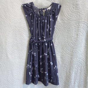 Lauren Conrad Gray & White Daisy Flower Dress Tie Neck & Elastic Waist Size XS