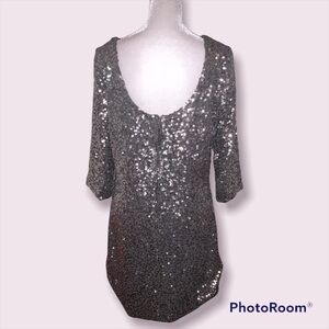 Lauren Conrad Gray Shift/T-Shirt Style Dress with silver sequins.