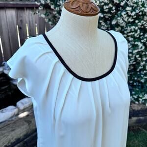 Lauren Conrad Ivory Black Trim Pleated Blouse Semi Sheer Women's Size Medium