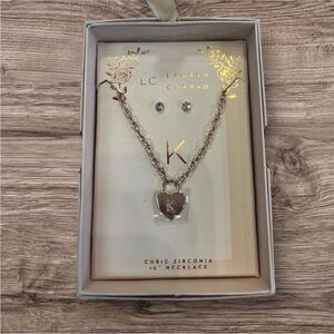 Lauren Conrad “K” Initial Heart & Rhinestone Necklace & Post Earring Set New Dam