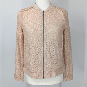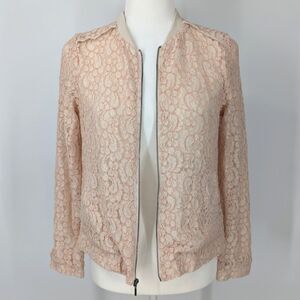 Lauren Conrad LC Light Blush Pink Floral Lace Zip Up Bomber Jacket Lined Size 6