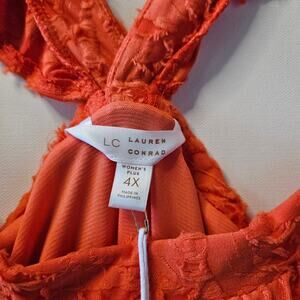 Lauren Conrad LC Women's Sleeveless Flowy Frayed Blouse Ruffled Orange Size 4X