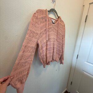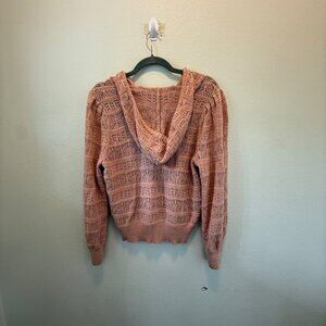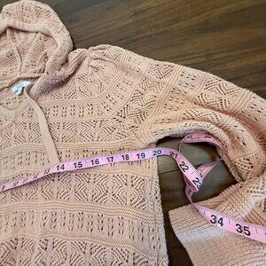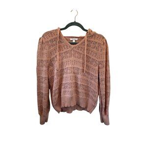 Lauren Conrad LC Women's Soft Pink Open Knit Hooded Sweater Size M Beachy