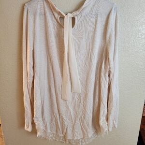 Lauren Conrad Lace Sparkle Cream Back Tie Sweater Tunic Large