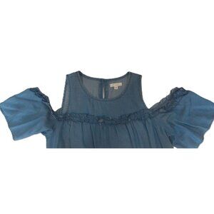Lauren Conrad Large Cold Shoulder Blue Chambray Top