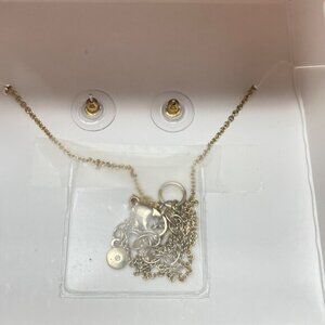 Lauren Conrad Letter C Monogram Necklace & Earring Set Gold-Tone 16" Chain New