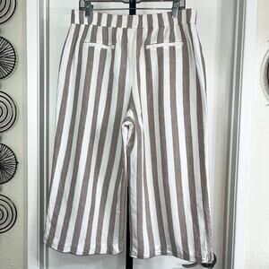 Lauren Conrad Linen Blend Cropped High Rise Pants - Tan White Stripe, Size L
