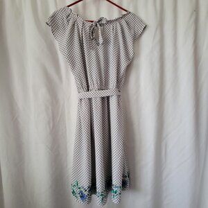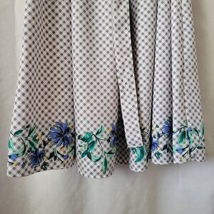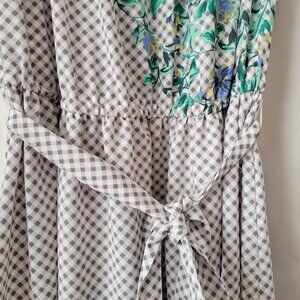 Lauren Conrad Medium Dress Checkered Floral Tie back Pleated Neck Cap sleeve EUC