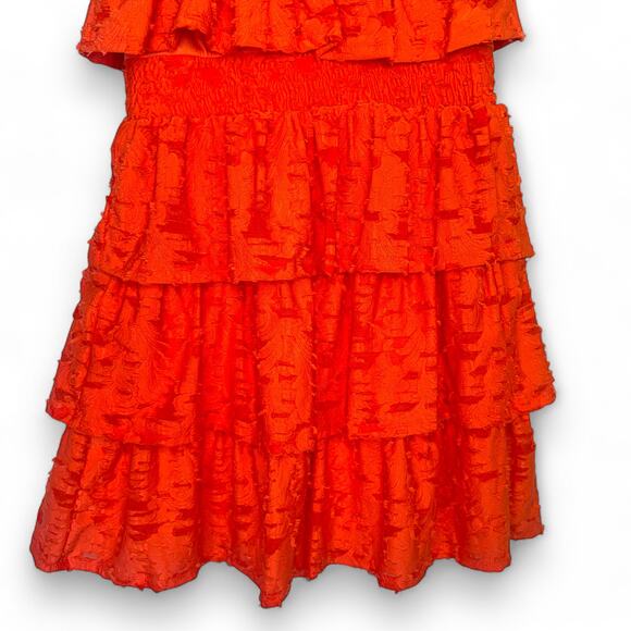 Make a statement in this stunning Lauren Conrad one-shoulder dress! This vibrant orange dress features a playful tiered ruffle design, perfect for adding a pop of color to your wardrobe. It's new with tags and in excellent condition.