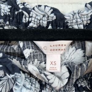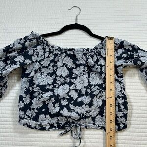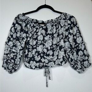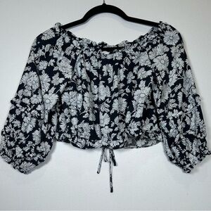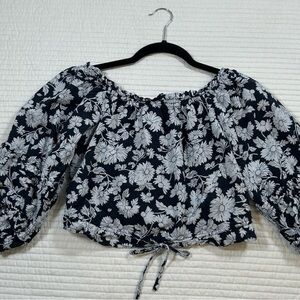 Lauren Conrad Navy and White Puff Sleeve Crop Blouse. Romantic.
