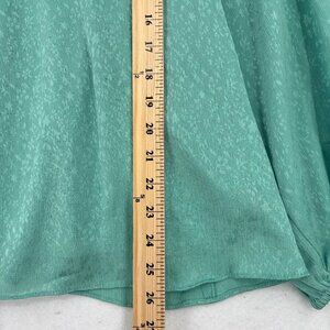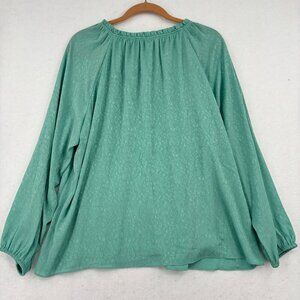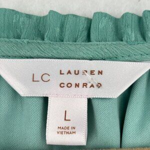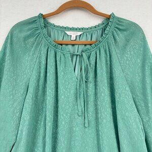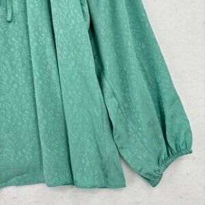 Lauren Conrad Peasant Blouse Size L Green Jacquard Print Lined Balloon Sleeve