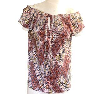 Lauren Conrad Peasant Top Mixed Print Shimmer Micropleated M 64J