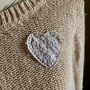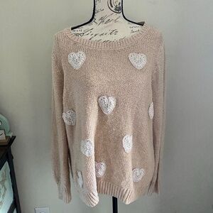 Lauren Conrad Pink Knit Sweater Lace Applique Hearts Size XL