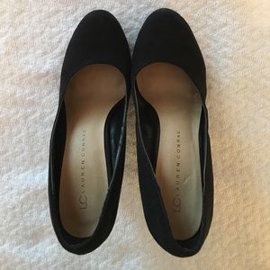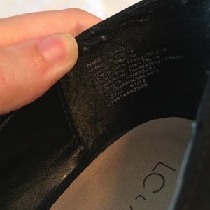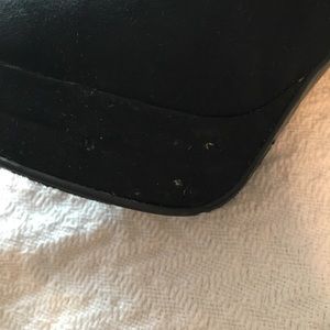 The inside of these looks great! No dirty footprints! The inside of the right shoe does have what looks like a few doggie teeth marks, but they're honestly not that noticeable. Black suede, size 8.