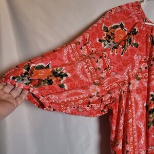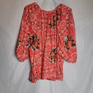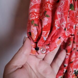 Lauren Conrad Red Floral Balloon Sleeve Button Front Summer Flowy Blouse Size XL