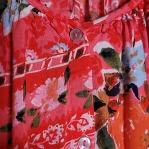 Lauren Conrad Red Floral Summer Blouse. Women's size XL. Has balloon sleeves with a one button detail and button in front. Lightweight. In great preowned condition. Measurements are approximate and are shown in photos.