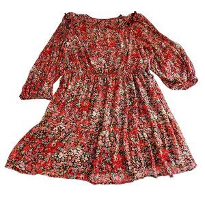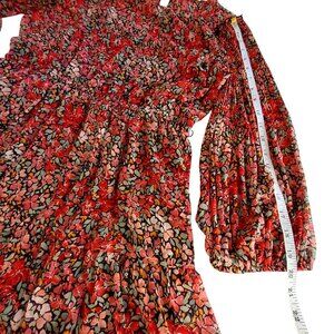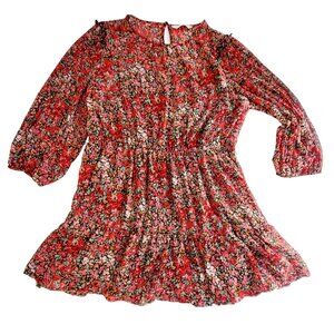 Lauren Conrad Red Floral Long Sleeve Dress Size PXL Polyester Made In Indonesia