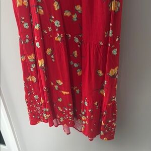 Vibrant red dress with a beautiful lemon 🍋 pattern. Sleeveless design with a square neckline.