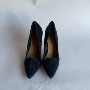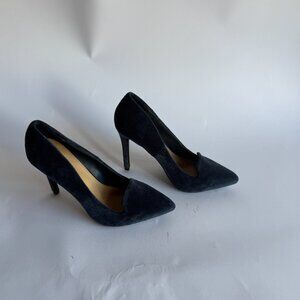 Limited Edition Runway heels in a deep navy suede. No original box. Size 8!! 4” heels. Suede feel. Light tried-on wear on bottom.