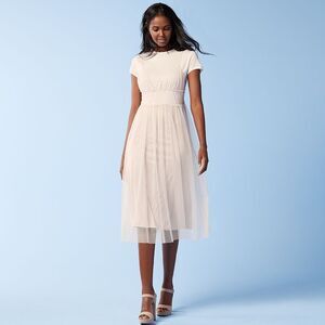 Lauren Conrad S Midi Dress Off-White Morning Babydoll Layered Slip Tulle TShirt