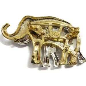 Lauren Conrad Silver And Gold Elephants Brooch Pin Marked LC