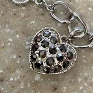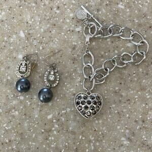 Lauren Conrad Silvertone, Black Stone & Rhinestone Bracelet & Earrings