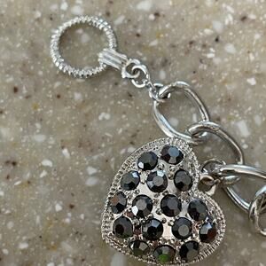 Puffed heart charm with black stones