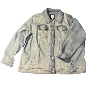 Lauren Conrad Size 3X Distressed Light Wash Stretch Cotton Jean Jacket