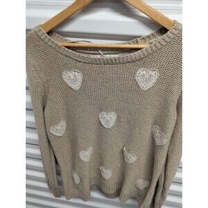 Lauren Conrad Size Large Beige and Lace Heart Sweater